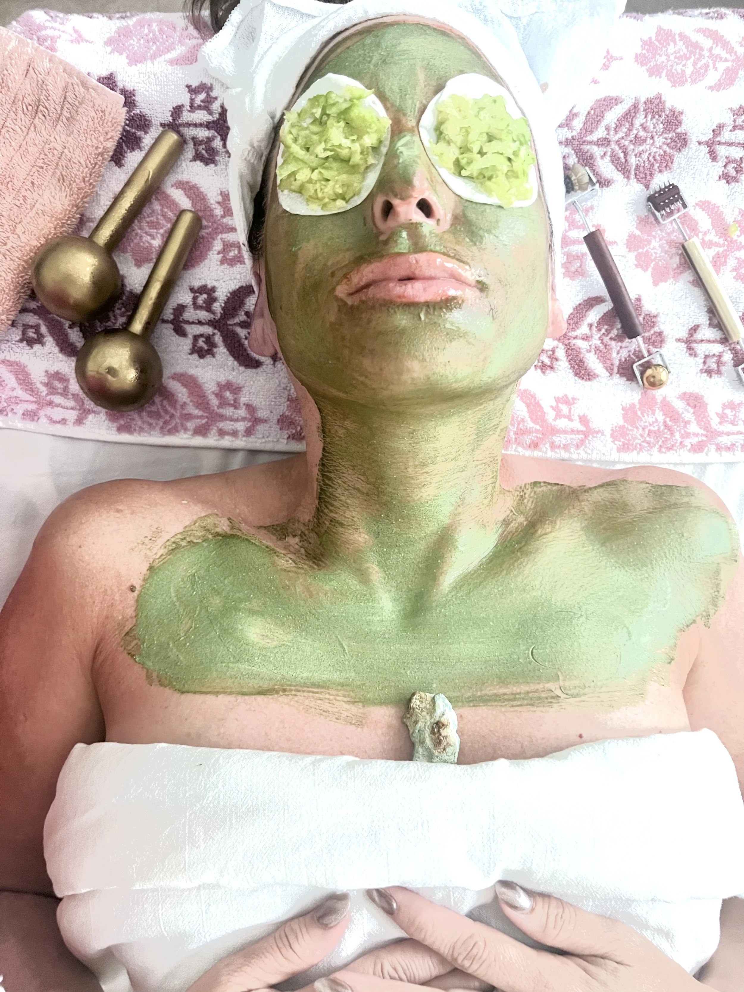 HEALING FACESATIONAL 60min/$175 A customized organic facial designed to regenerate the skin’s natural vitality using pure, active ingredients such as fruit enzymes, natural lactic acid, and herbs, paired with time-honored holistic modalities. The treatment begins with an Ayurvedic skin and wellness analysis, followed by a pre-cleanse oil ritual and opening of the marma points, ultrasonic exfoliation, and a face and neck lymphatic drainage massage. A deeply relaxing neck, arm, and shoulder massage and hydrating masks complete the experience. Closing with self-love affirmations ♡ (Extractions available as an add-on)